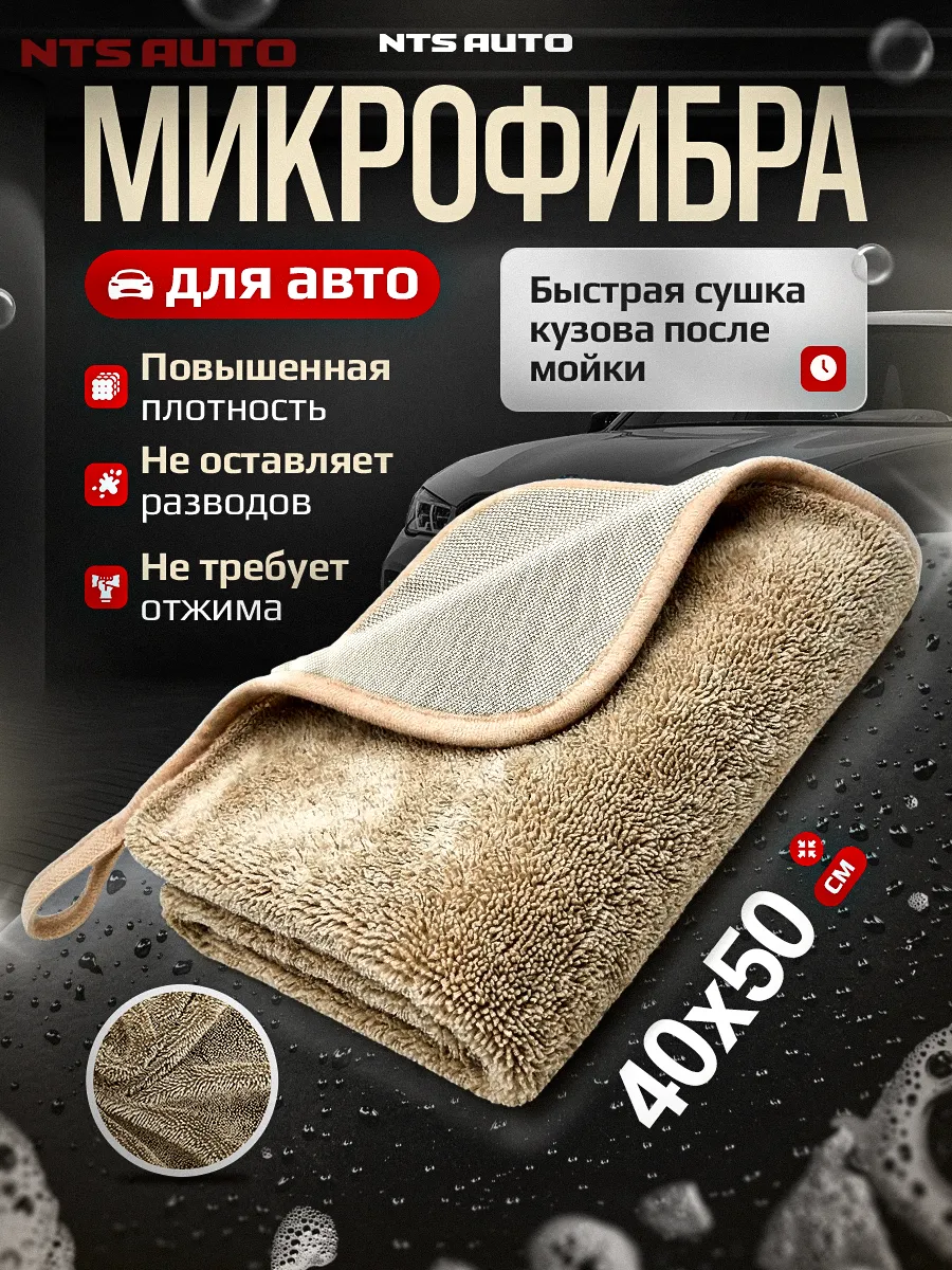 Полотенце из микрофибры для авто 40Х50см БЕЖЕВОЕ